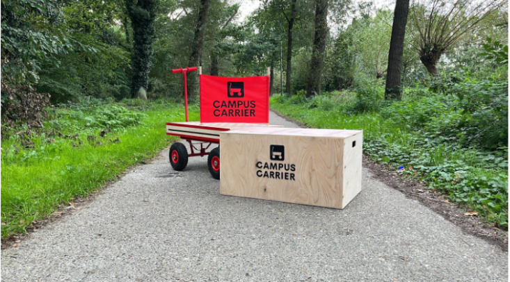 Het Live project rond de HUB Diepenbeek gaat over onze toekomstige campus. In samenwerking met POM, Gijs Van Vaerenbergh en de Universiteit van Hasselt is er een beeldkwaliteitsplan opgesteld. Dit plan stelt voor hoe de campus er in de toekomst uit zal zien. De campus zal over een aantal jaar grote veranderingen ondergaan. Om te beginnen hebben de interieur- en architectuurstudenten het masterplan van de toekomstige campus grondig bestudeerd en botsten ze op een aantal pijnpunten. Het belangrijkste pijnpunt voor alle studenten van de campus Diepenbeek waren de parkings. Deze zouden vervangen worden door parkeertorens om op termijn de omgeving rond de campus autovrij te maken. Dit idee vonden we allemaal zeer positief en interessant. Hieruit ontstond dan ook onze onderzoeksvraag, namelijk: “Hoe kan je als student je materiaal zo veilig mogelijk naar de campus vervoeren vanuit die torens of vanuit en met het openbaar vervoer en fiets?” Als oplossing voor dit probleem hebben ze de ‘Campus Carrier’ uitgevonden. De Carrier is onze mobiele rugzak en vervoert de spullen die zowel studenten als docenten niet kunnen dragen. Je kan hem al wandelend voorttrekken of eventueel ook aan je fiets monteren. Hij is modulair en aanpasbaar aan de noden van de gebruiker. Kort samengevat is onze Campus Carrier flexibel, praktisch, modulair en voor iedereen toegankelijk.